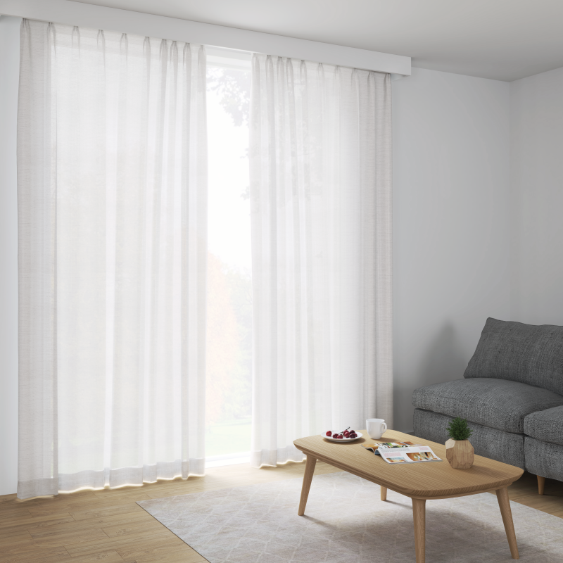 機能糸を使用した麻調無地ファブリックです。防炎機能と高い遮熱性とUVカット性・遮像(昼)を備えた高機能シアーとしてご使用いただけます。